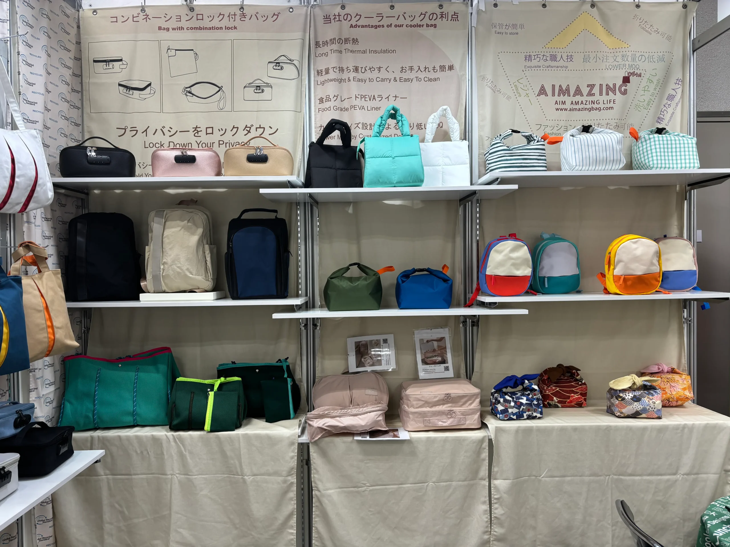 We produce various luggage and bags of different bag fabrics , including faraday bag,smell proof bag ,cut proof,tote bags,backpack,cooler bags,travel bags,lockable bag,makeup bags,gym bags, shopping bags,beach bags,different lifestyle bags and so on. Our bags are manufactured according to ISO 9001, ASTM, BSCI, EN, China GB standards, and specific customer requirements. Our bag products are sold worldwide, extensively used across various sectors such as business retail, e-commerce platforms, boutique stores, corporate branding, event promotions, and personalized gift enhancements.
