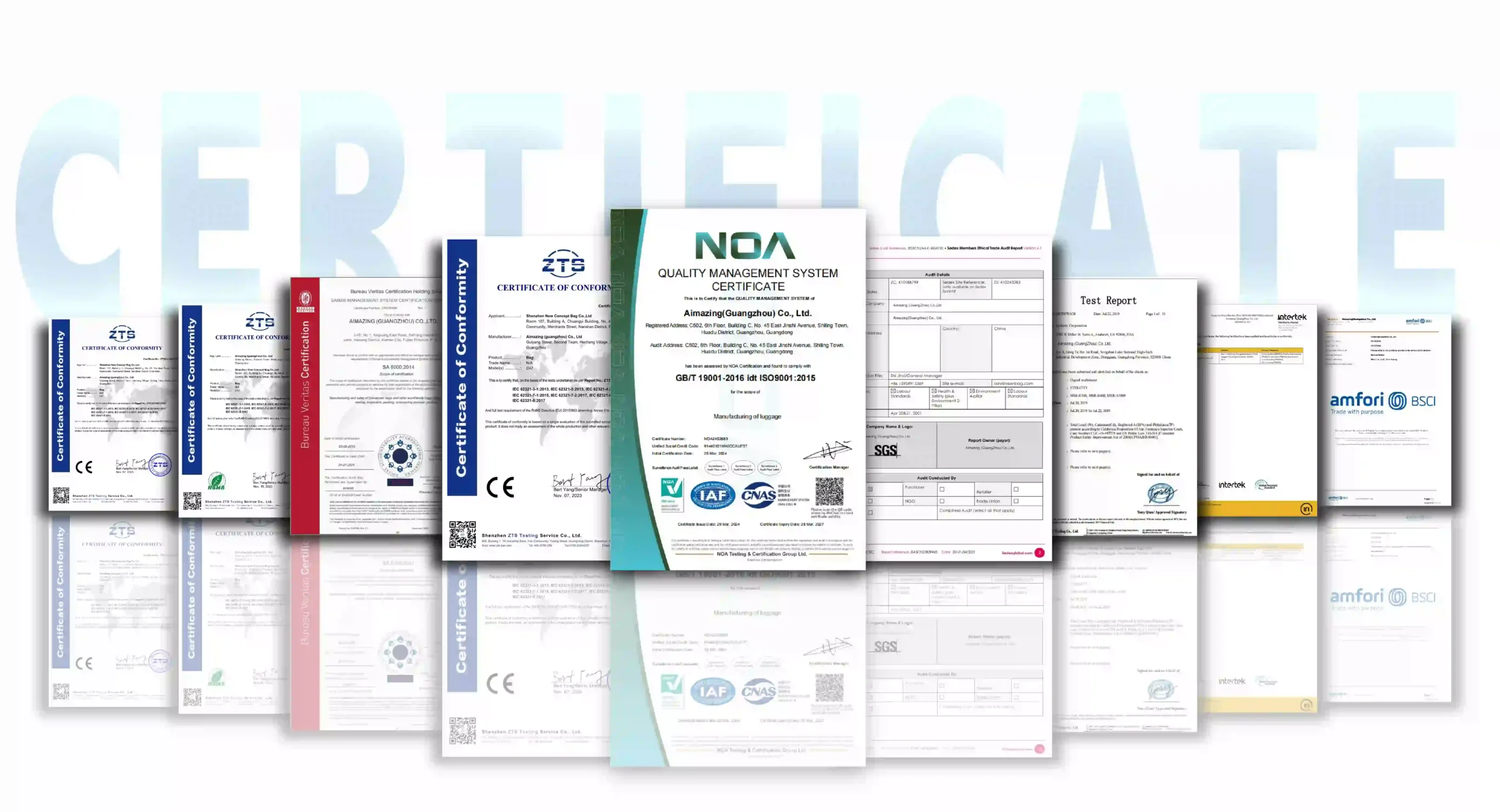 The product quality of Aimazing Guangzhou Factory has always been highly valued. Our factory has obtained certifications from international systems such as SGS, ISO, SMETA and BSCI, which also prove our commitment to achieving the highest manufacturing standards. Moreover, our luggage and bag products have undergone strict quality inspections and have been recognized by customers for their excellent quality.