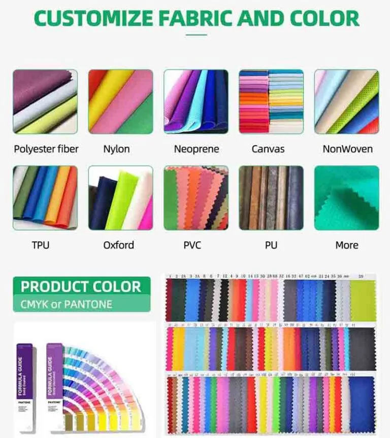 Choose your favorite custom fabrics: Oxford, canvas, neoprene, leather, RPET, waterproof vinyl, fireproof textiles, and more.